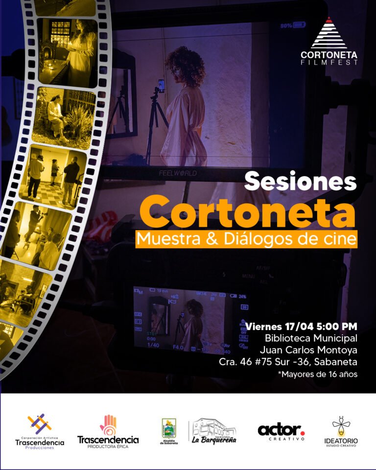Proyección de cortometrajes realizados en Sabaneta y Medellín, acompañados de conversaciones sobre actuación, dirección y creación audiovisual.